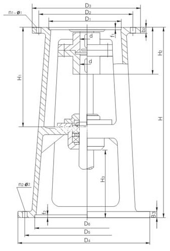 注:圖示所注“h2”僅與本樣本XLD系列減速機(jī)相配,如選用其他型號(hào)或其他廠家減速機(jī),“H2”需另計(jì)算,Ⅰ型為普通型;Ⅱ型為增高型、除H、H2尺寸加大外,其余尺寸與Ⅰ型相同。